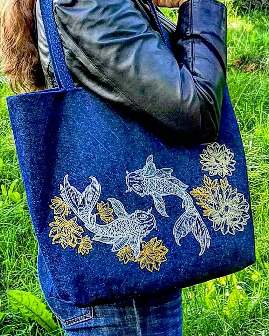 Сумка с серебряно-золотой вышивкой "Карпы Кои"